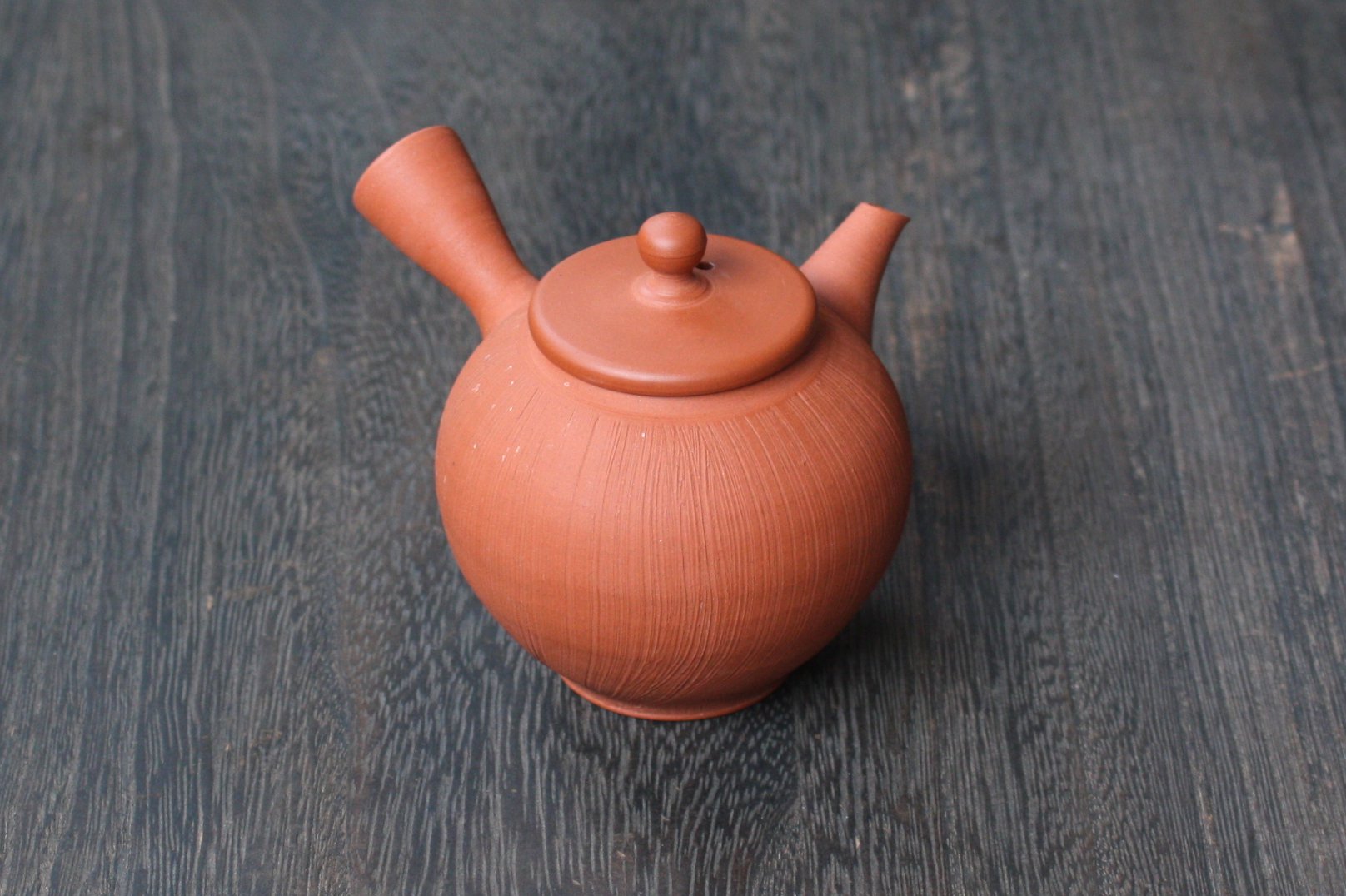 玉光窯 朱泥窯変スジ引き急須 セラメッシュ(陶製茶こし)gyokkou050
