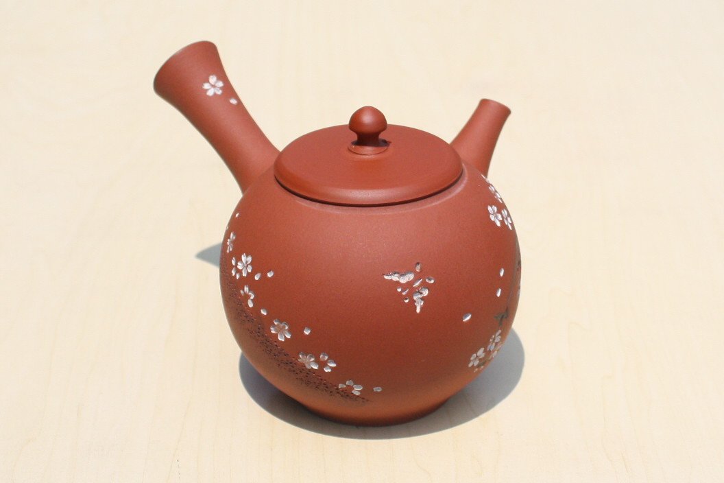 都築青峰 朱泥桜と蝶急須 ささめ茶こし seihou017