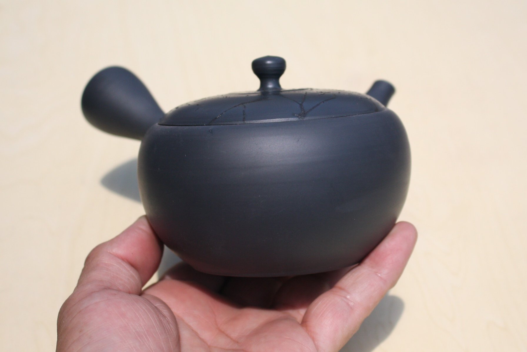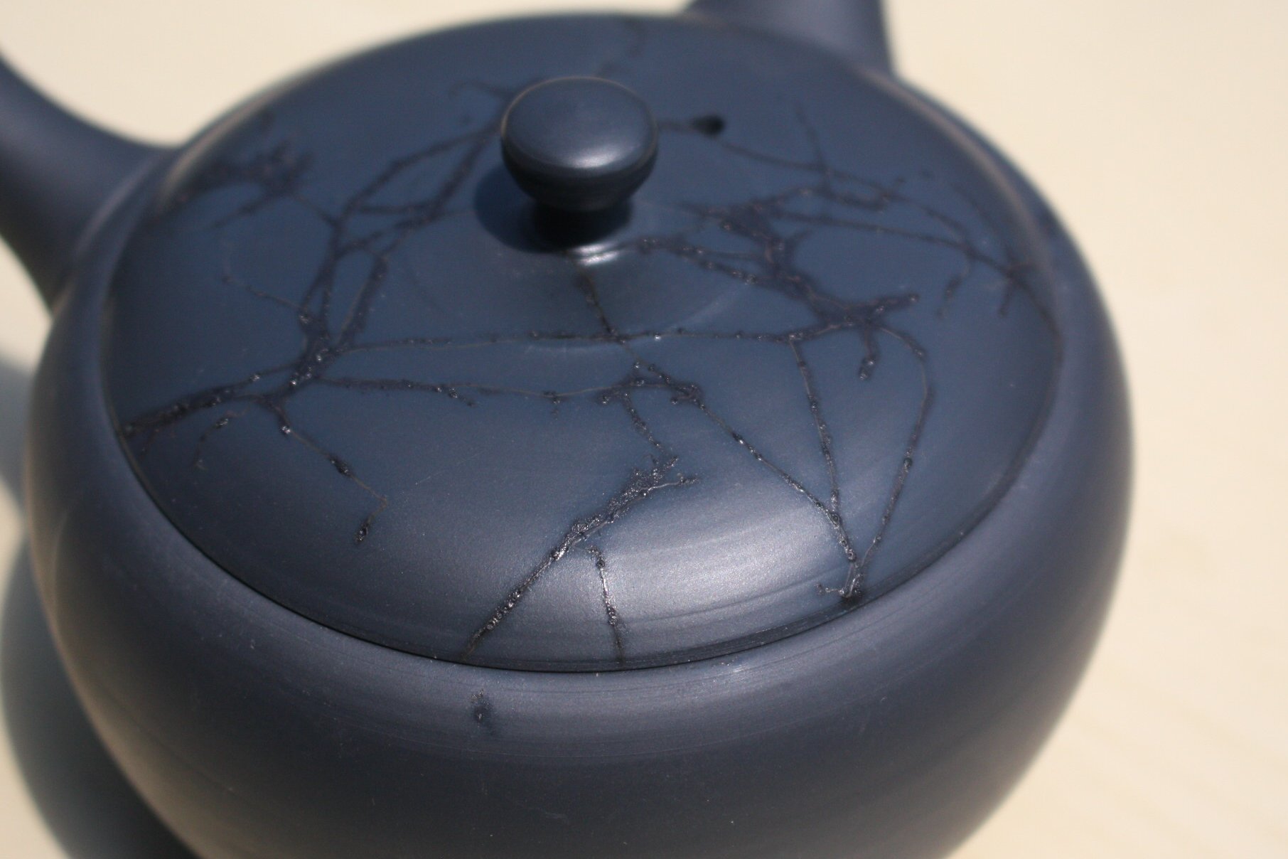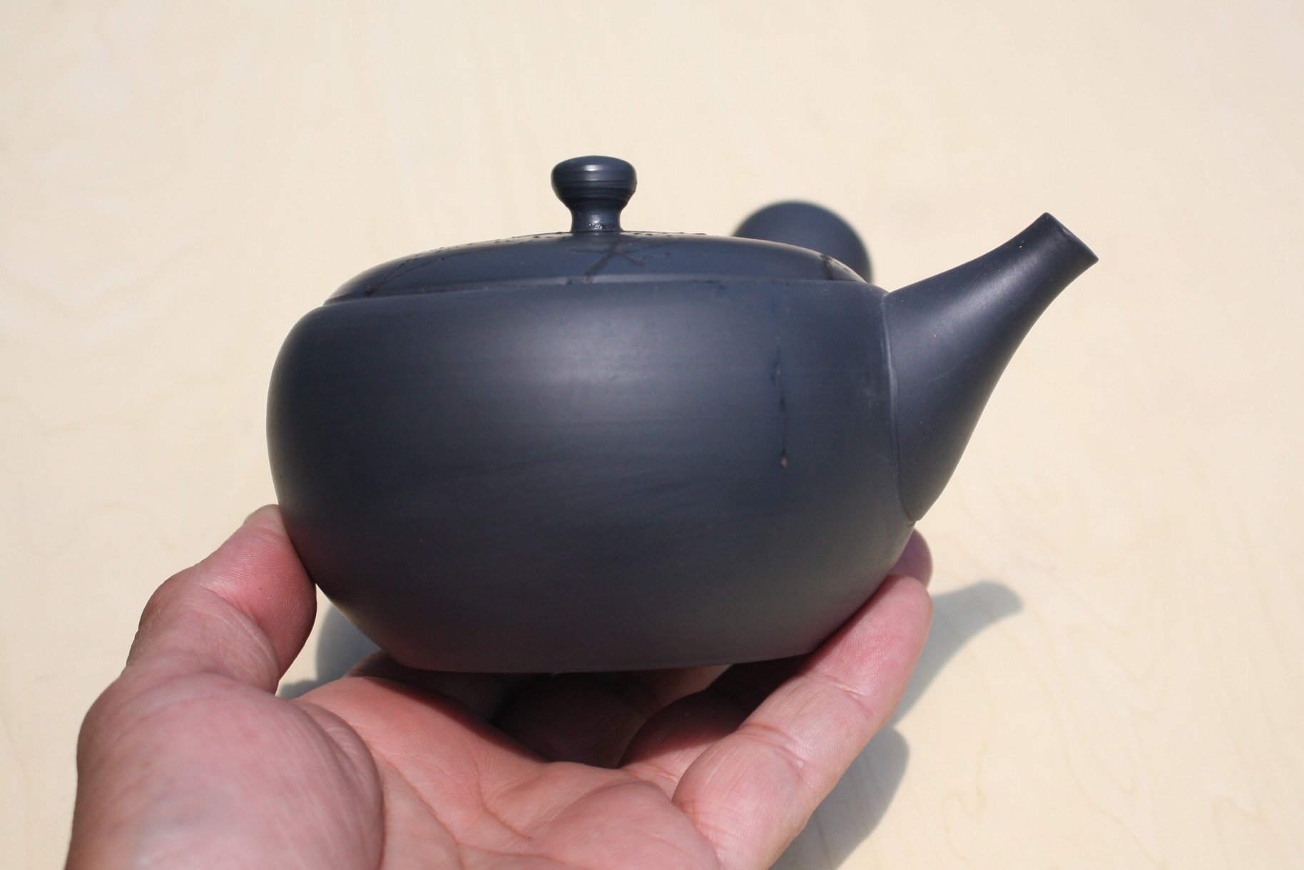 | 商品説明 | 玉光窯さんの手造り急須。長く使っていても飽きの来ないシンプルなデザインです。胴体・蓋・注ぎ口・持ち手は全てロクロで回転させながら成形します。緑泥陶土を1100度で焼成した後に炭化焼成を行い濃紺の色に変化させます。表面には海藻を乗せ焼成しています(藻掛けの技法)陶製茶こしはお茶の味をそのまま引き出し、お茶本来の味を楽しむことができます。注ぎ口の中まで洗える、かんたん茶しぶとりを1つプレゼント |