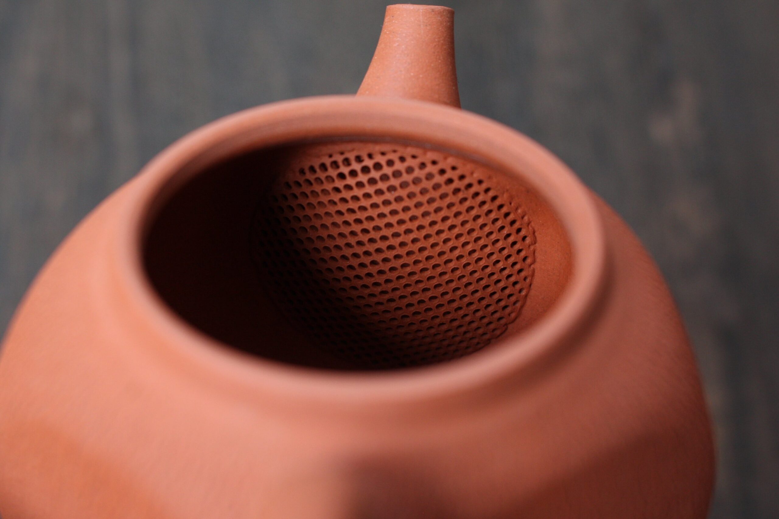 甚秋陶苑 朱泥布目ポット 陶製茶こし 一品作 jinshu002