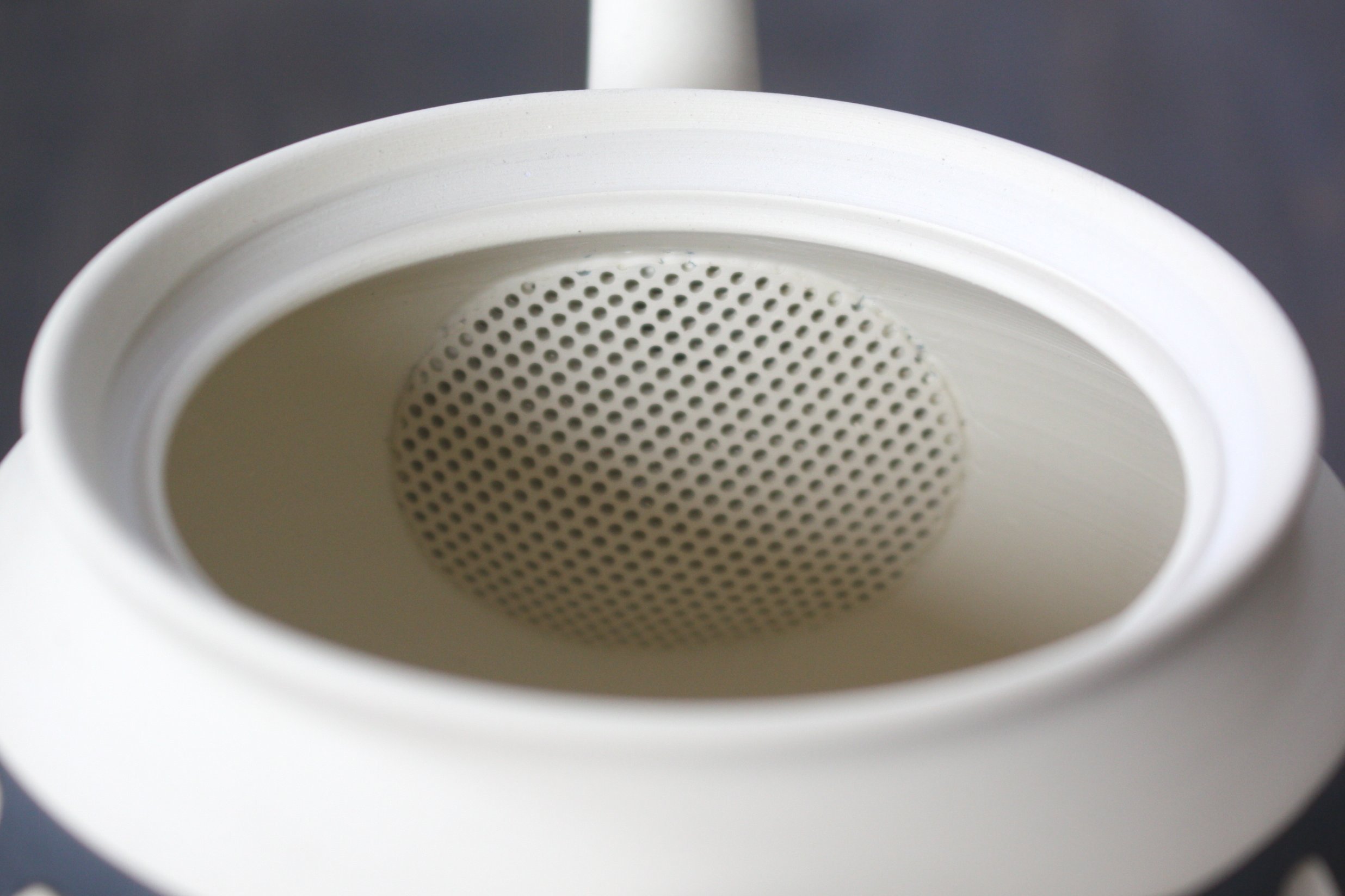| 商品名 | 憲児陶苑 白泥ポット 青水玉カット セラメッシュ(陶製茶こし)kenji015 |