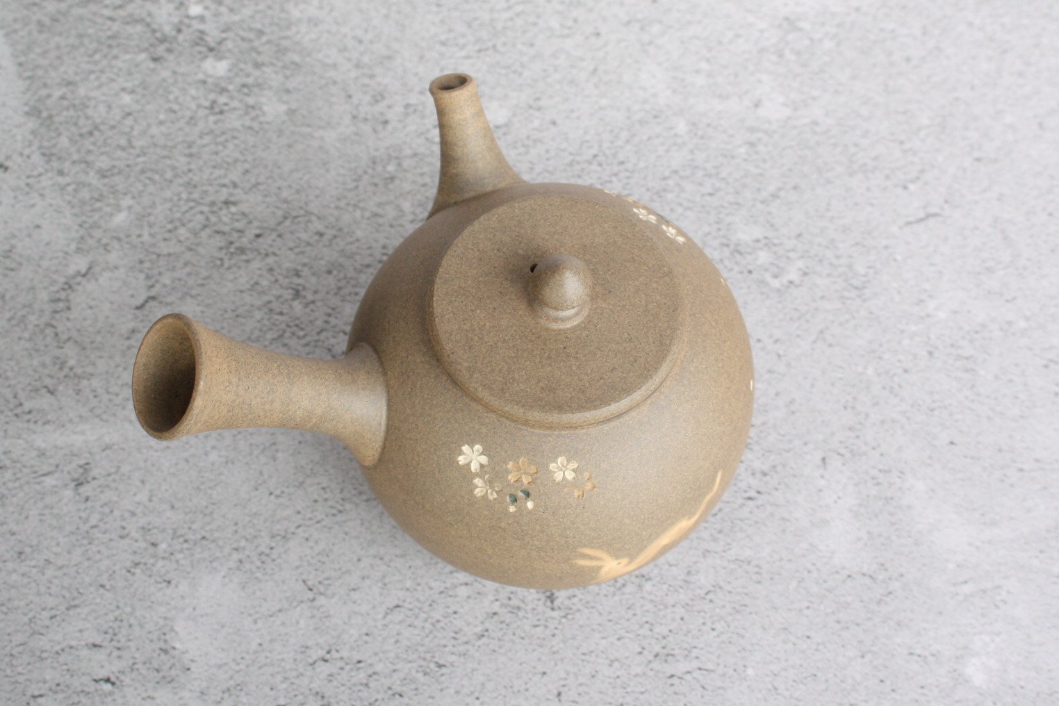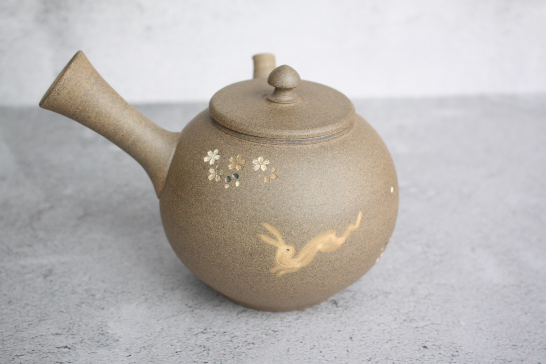 都築青峰 焼締うさぎと桜急須 350ml ささめ茶こし seihou002