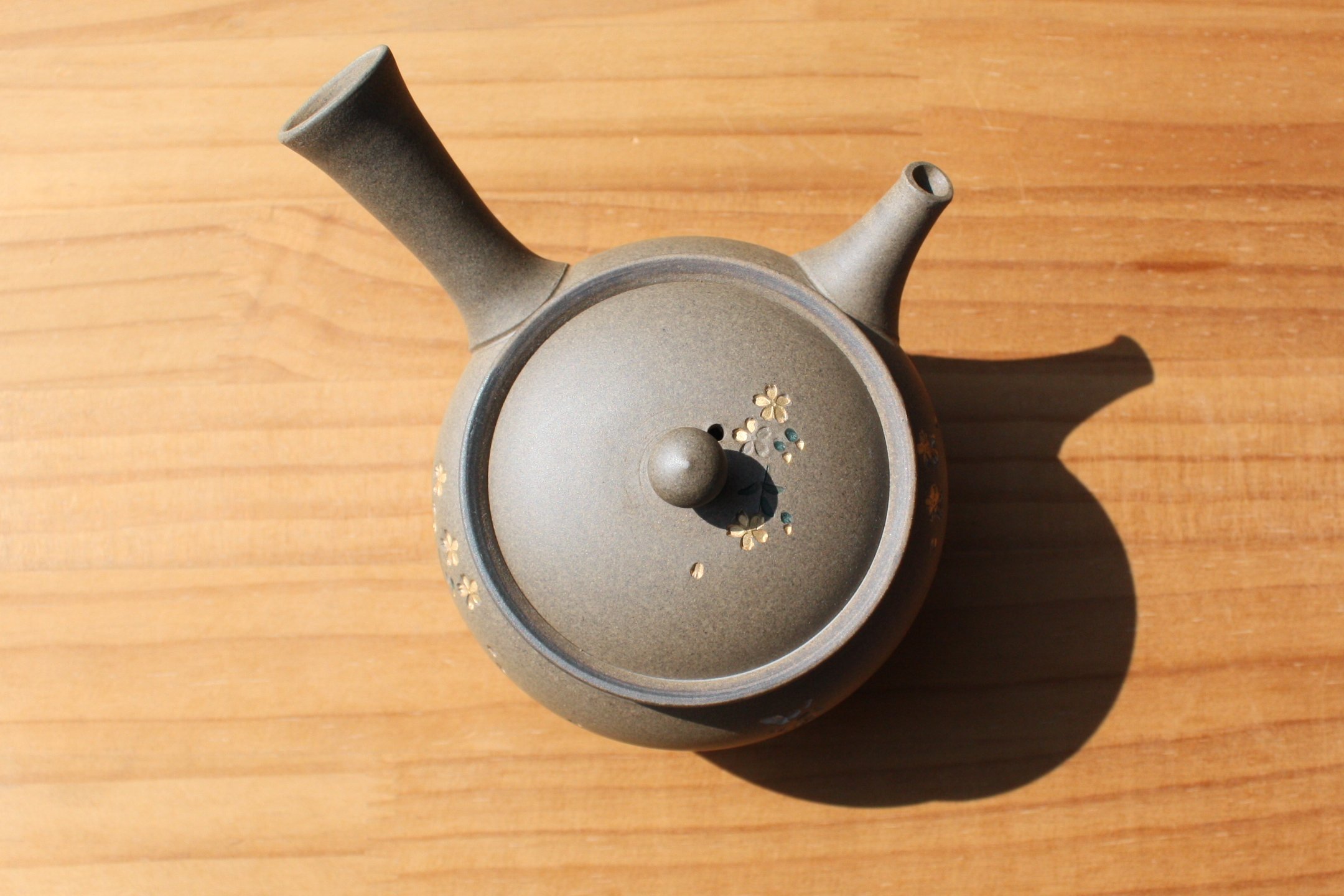 都築青峰 焼締蝶と金彩桜急須 ささめ茶こし seihou011