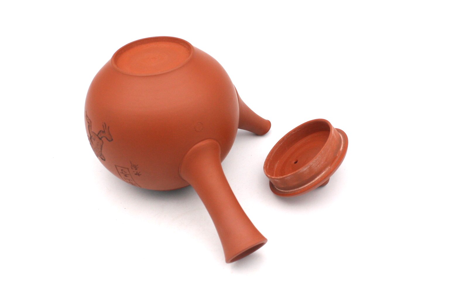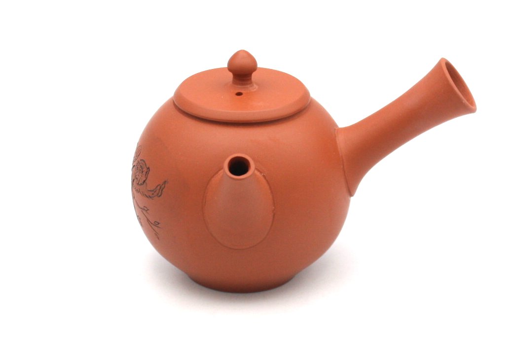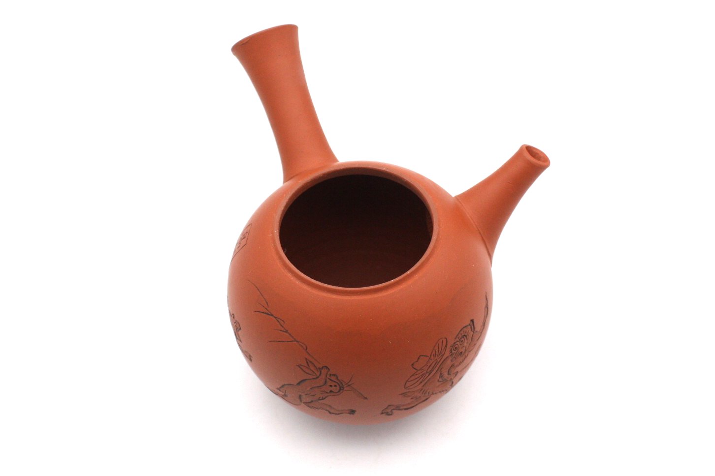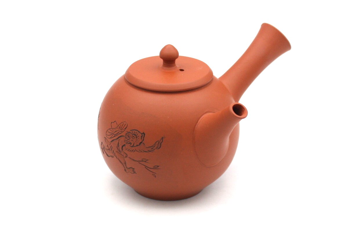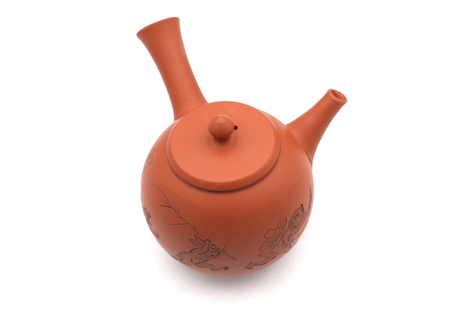 都築青峰 朱泥鳥獣戯画急須 ささめ茶こし seihou013