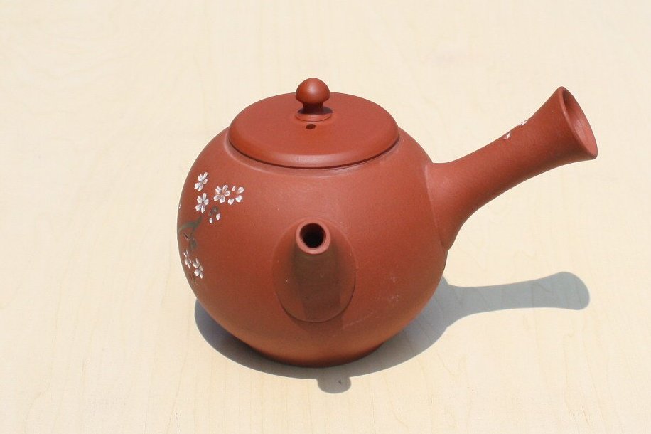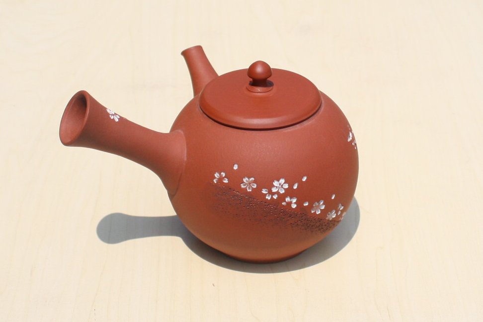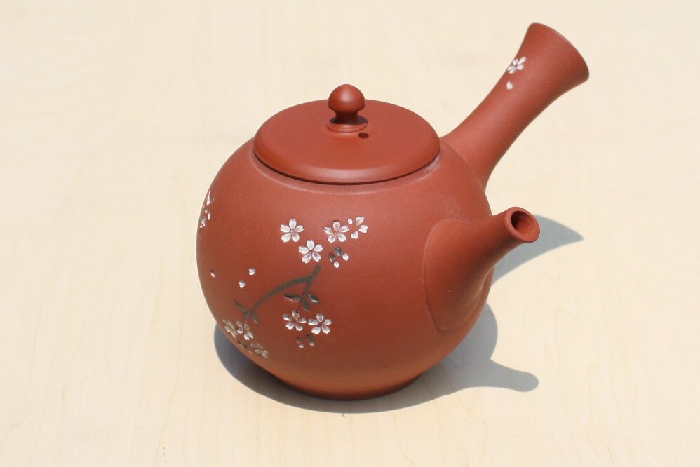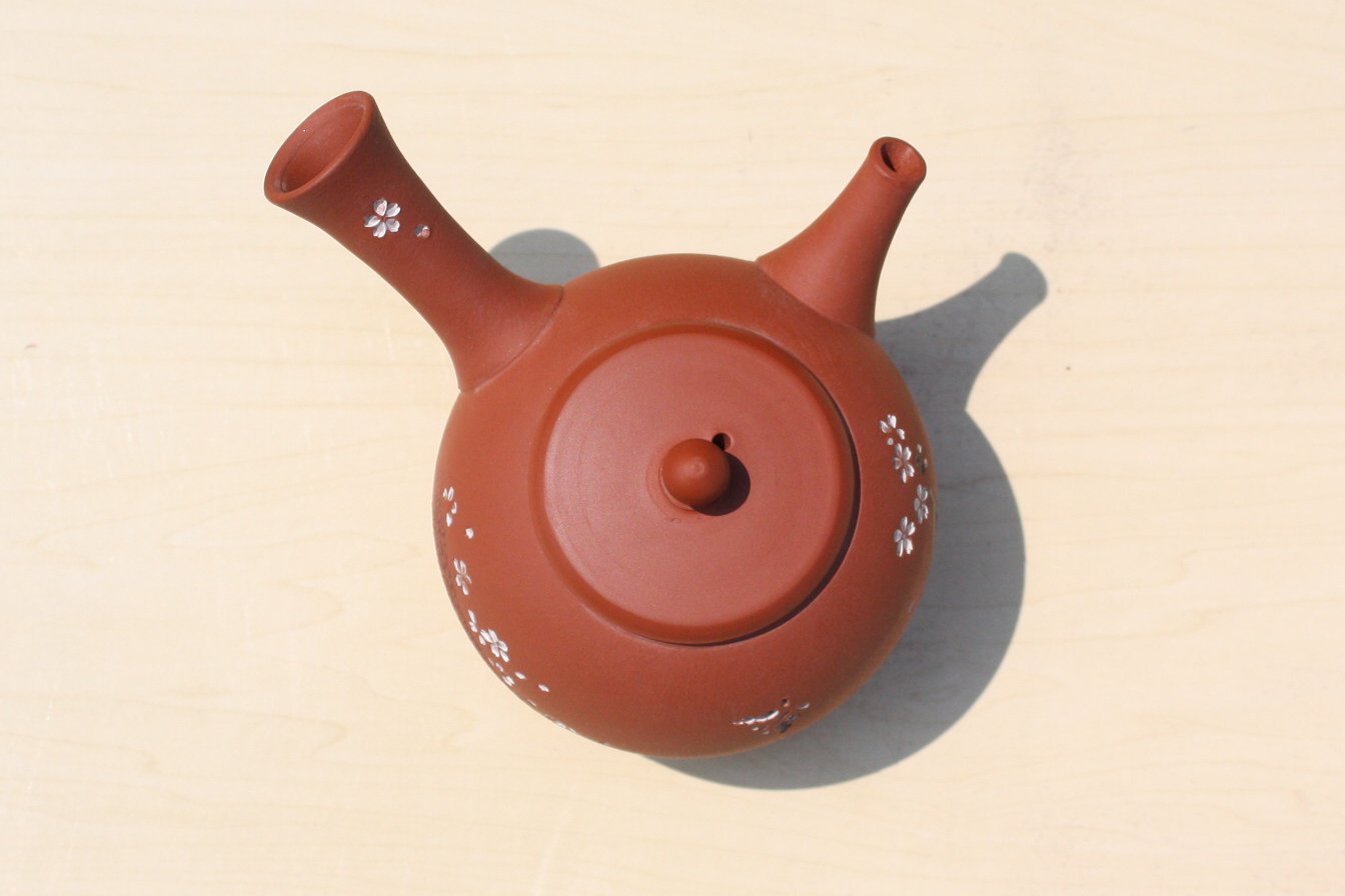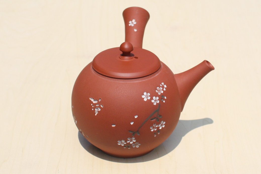 都築青峰 朱泥桜と蝶急須 ささめ茶こし seihou017