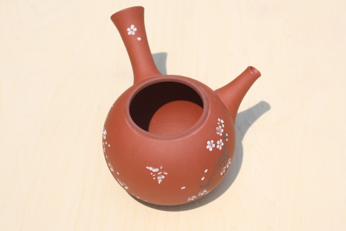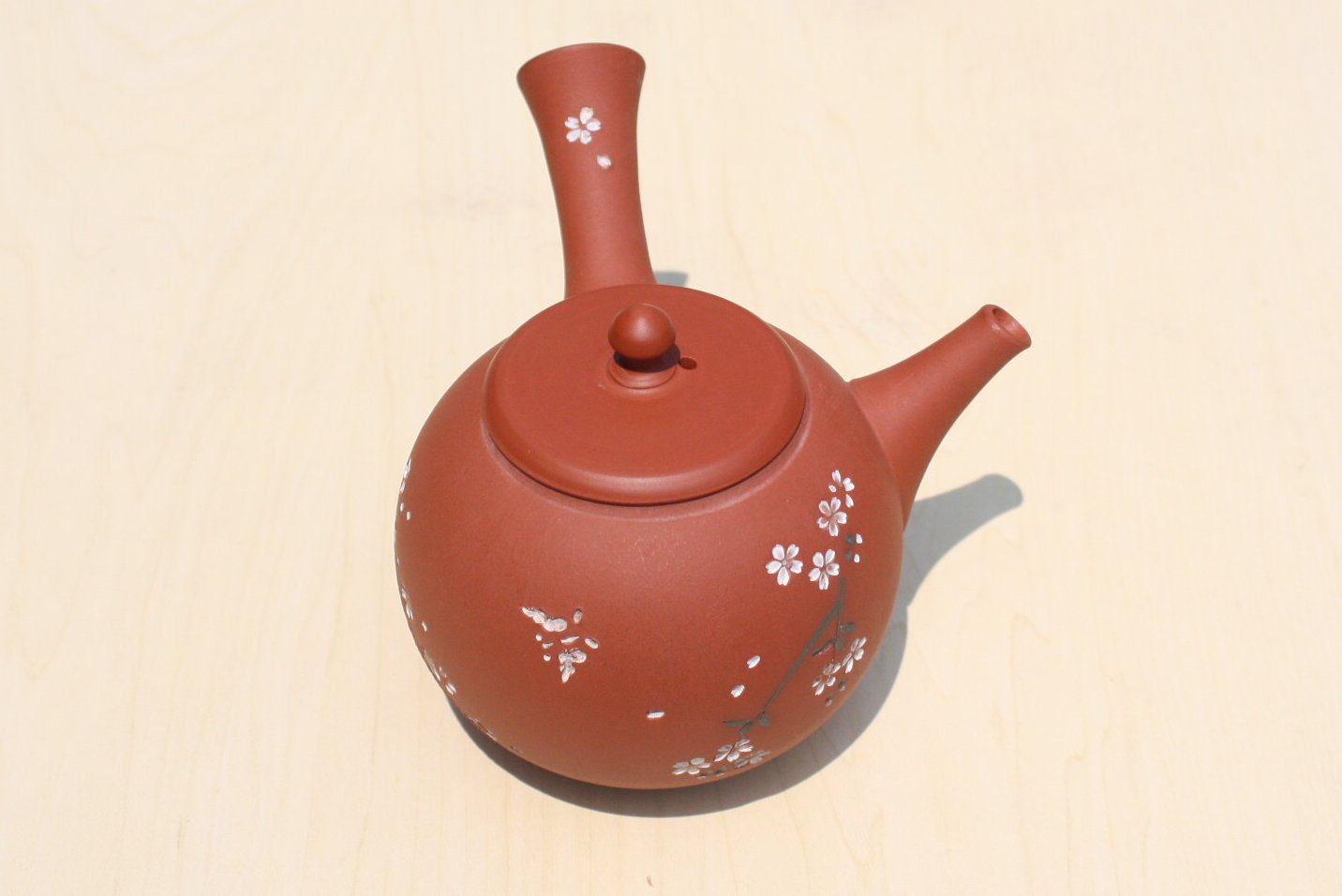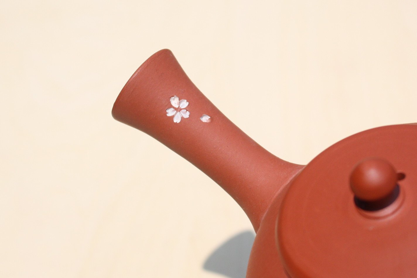 都築青峰 朱泥桜と蝶急須 ささめ茶こし seihou017