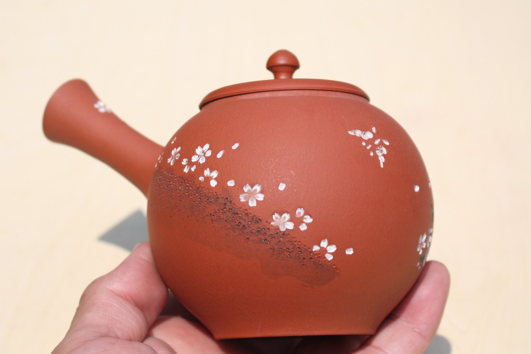 | 商品説明 | 日本工芸会正会員の都築青峰さんの手造り急須です。朱泥陶土を使用し1100度以上の高温で焼成しています。表面には桜と蝶の模様の判が手押しされています。ささめ茶こしはお茶の味を引き出しお茶本来の味を楽しむことができます。注ぎ口の中まで洗える、かんたん茶しぶとりを1つプレゼント。 |