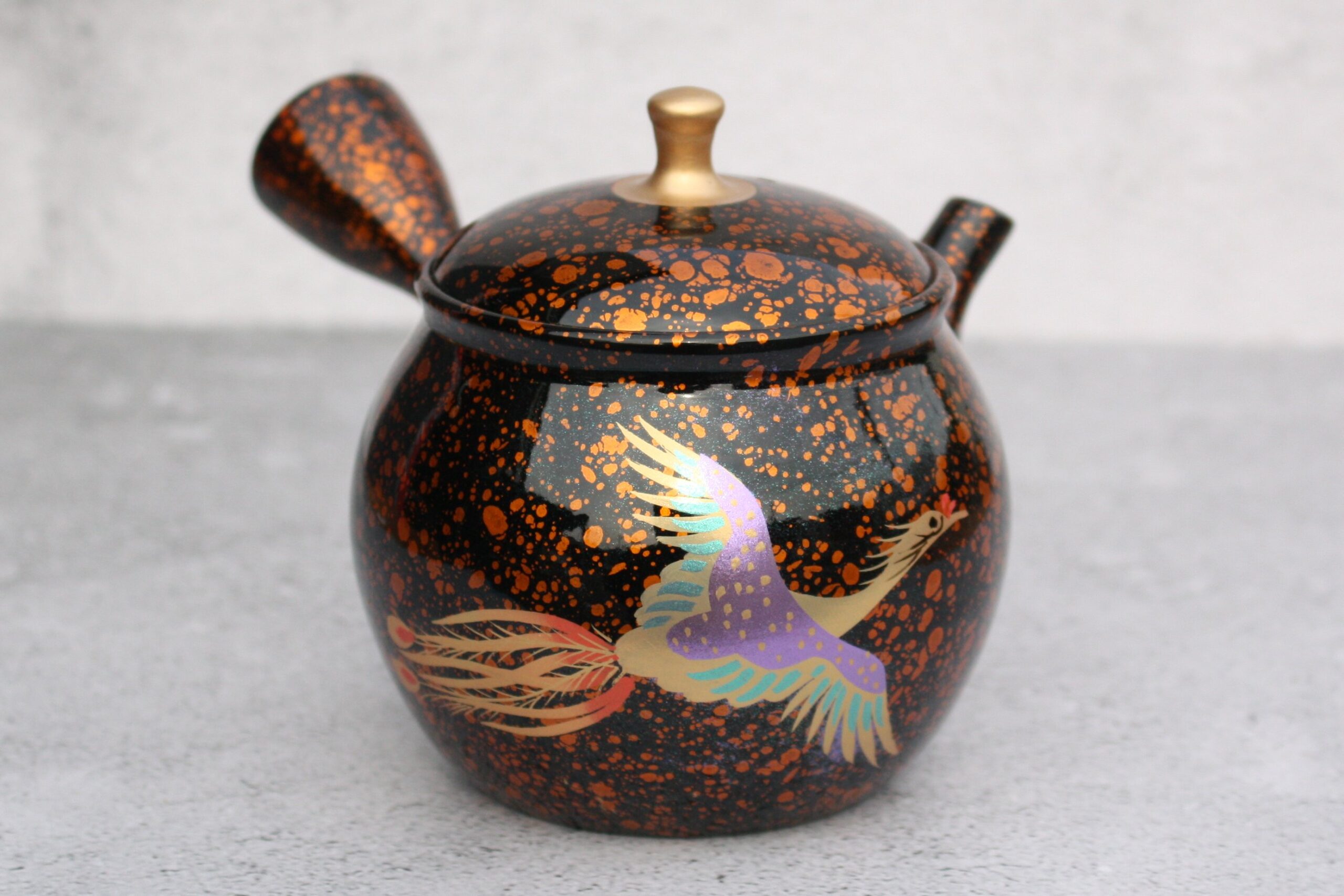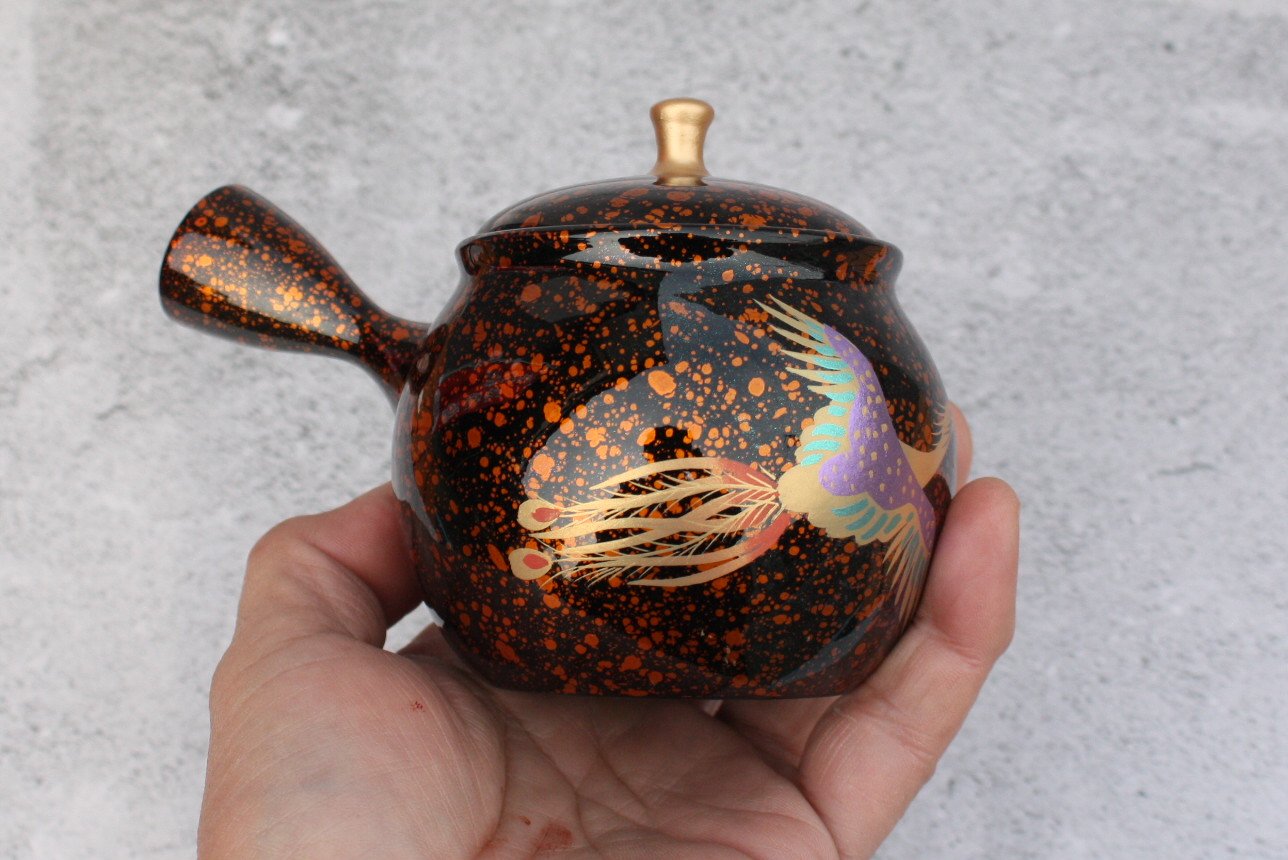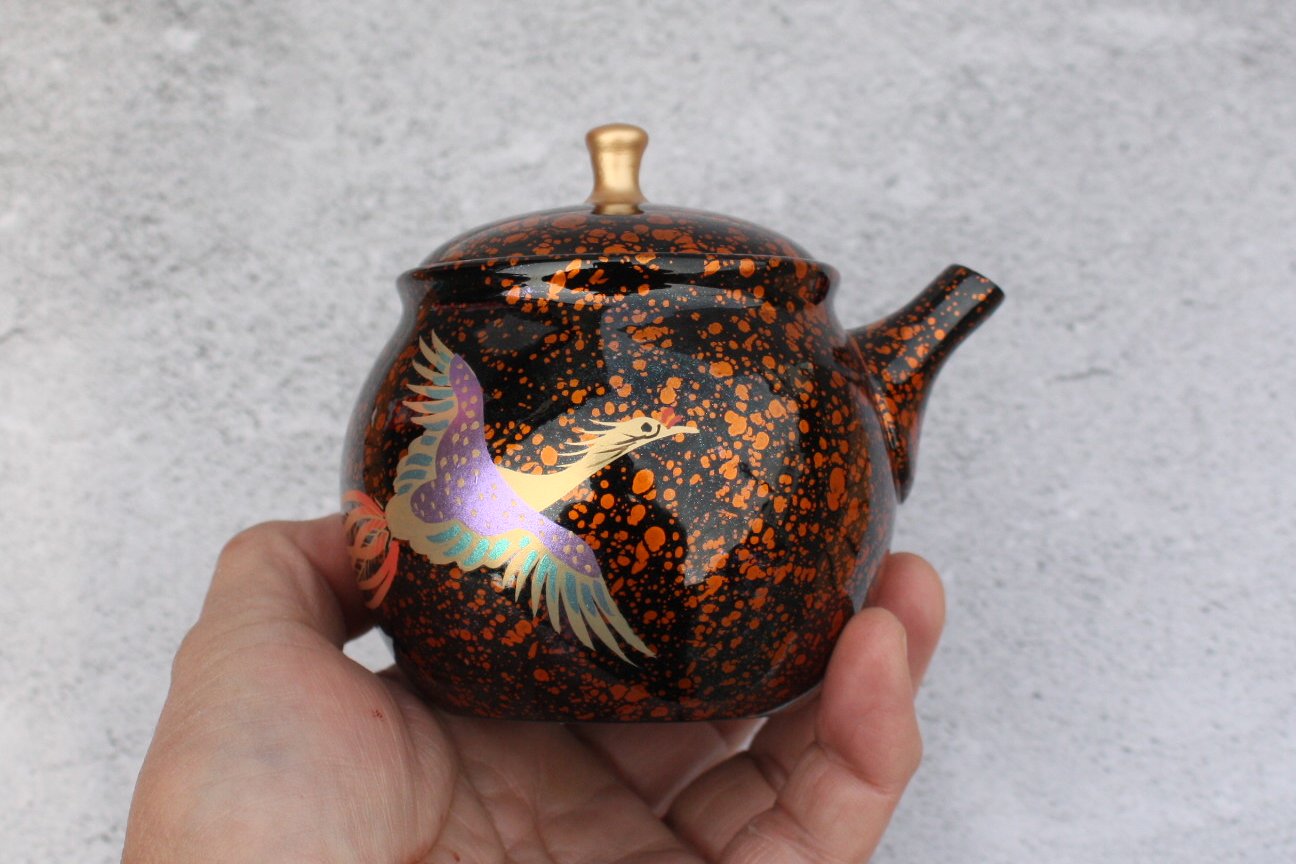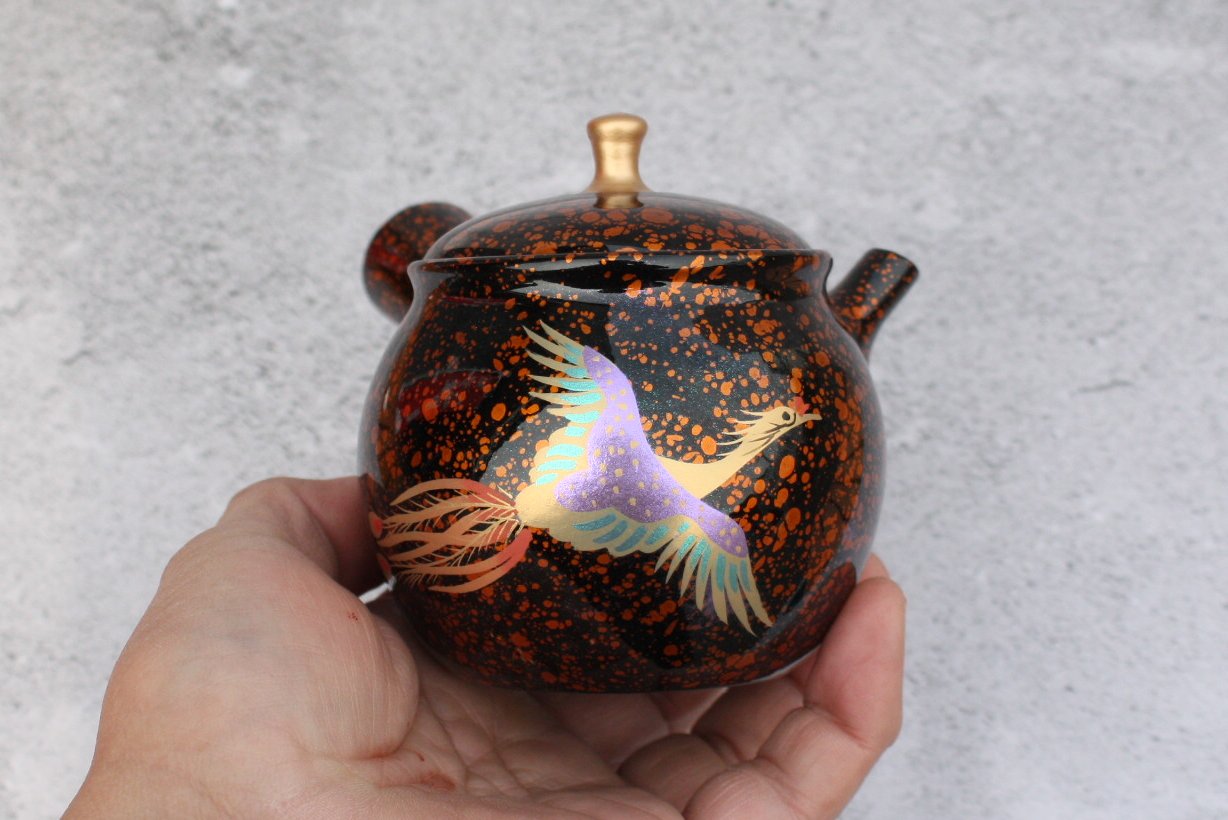昭龍窯 朱泥黒茶蒔絵急須 鳳凰 セラメッシュ(陶製茶こし)shouryu012