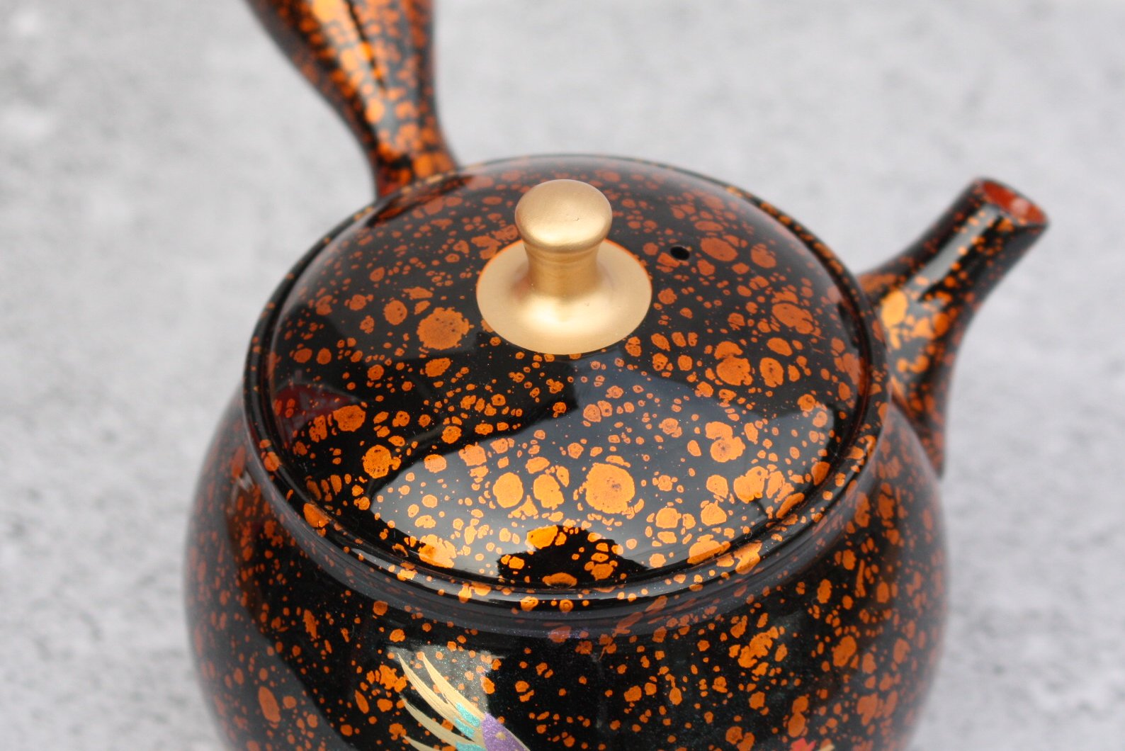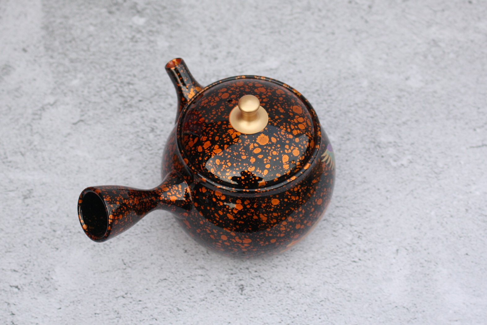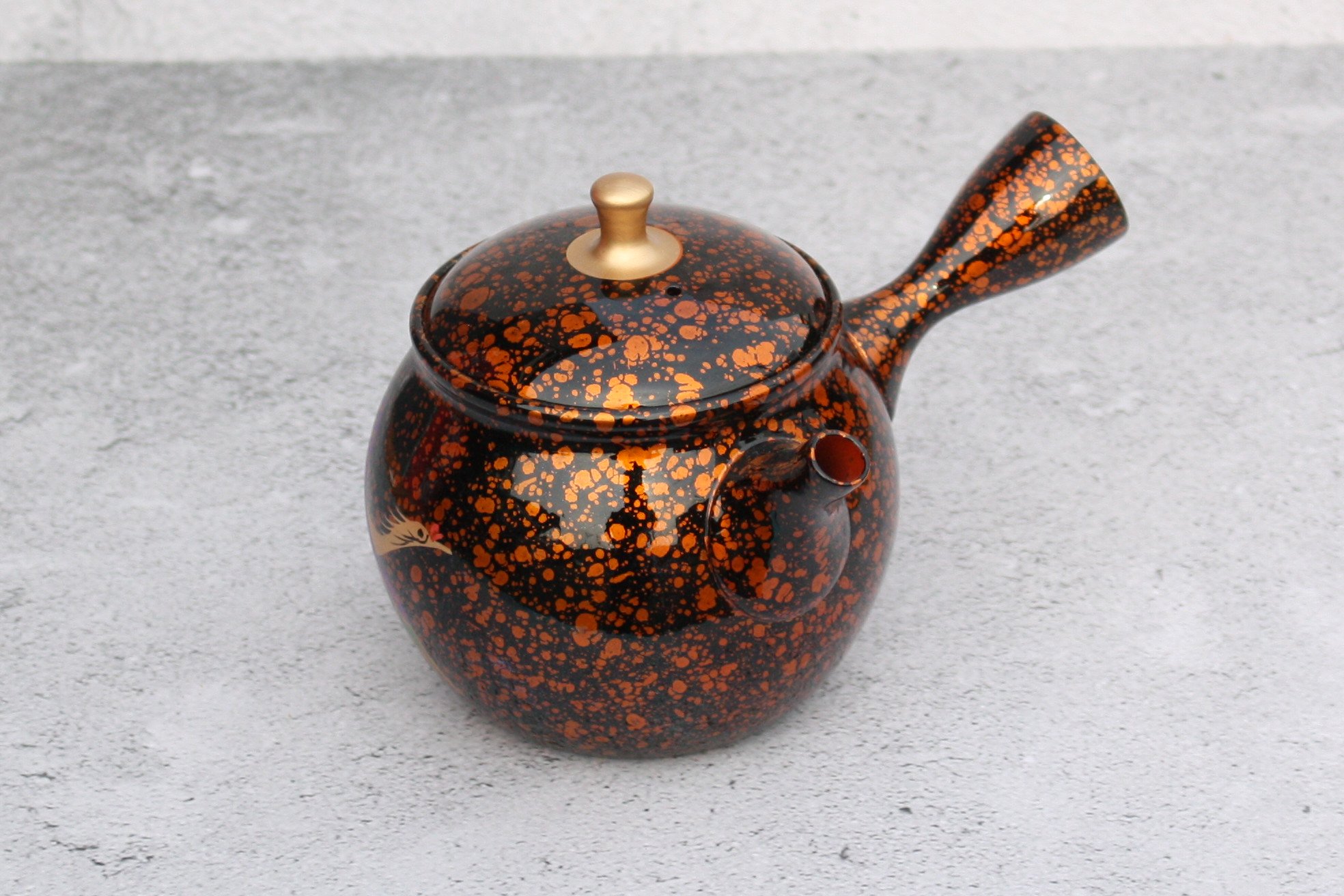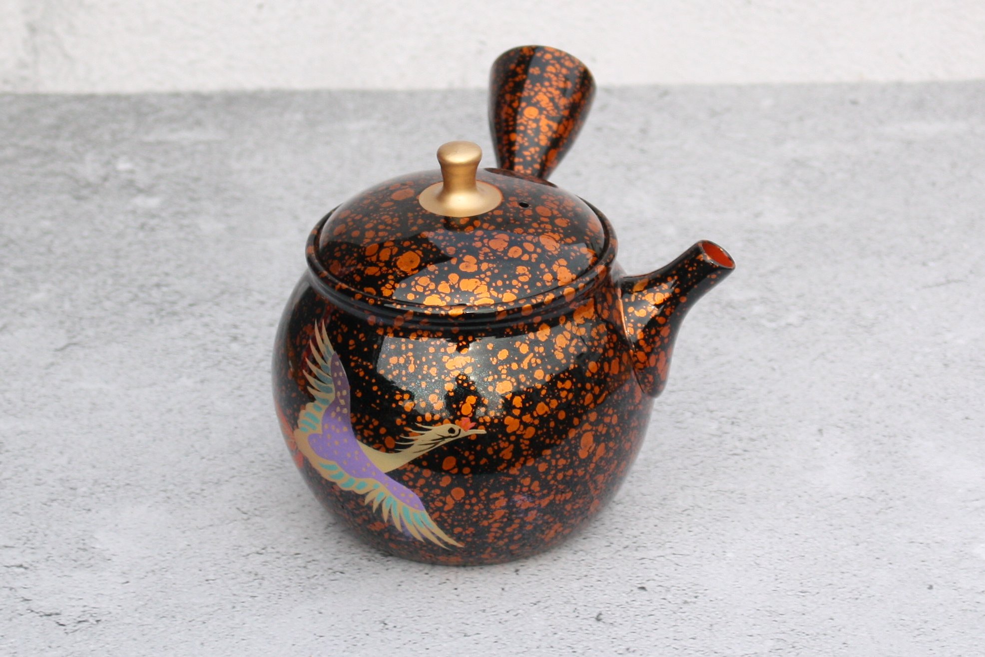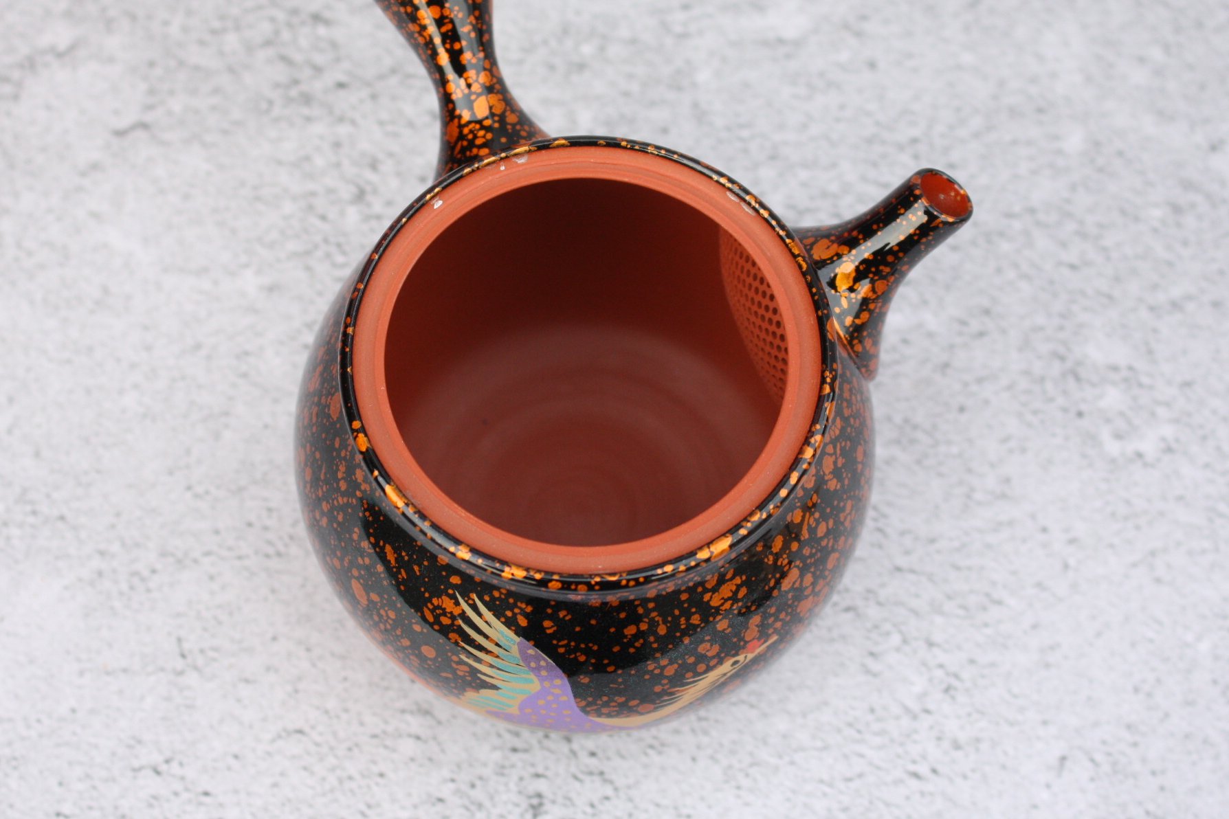 商品名 昭龍窯 朱泥黒茶蒔絵急須 鳳凰 セラメッシュ(陶製茶こし)shouryu012