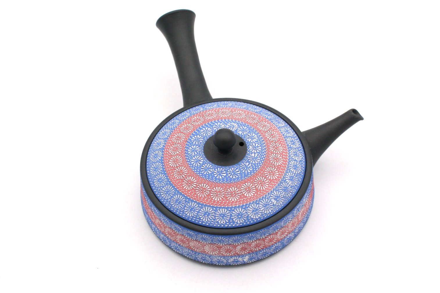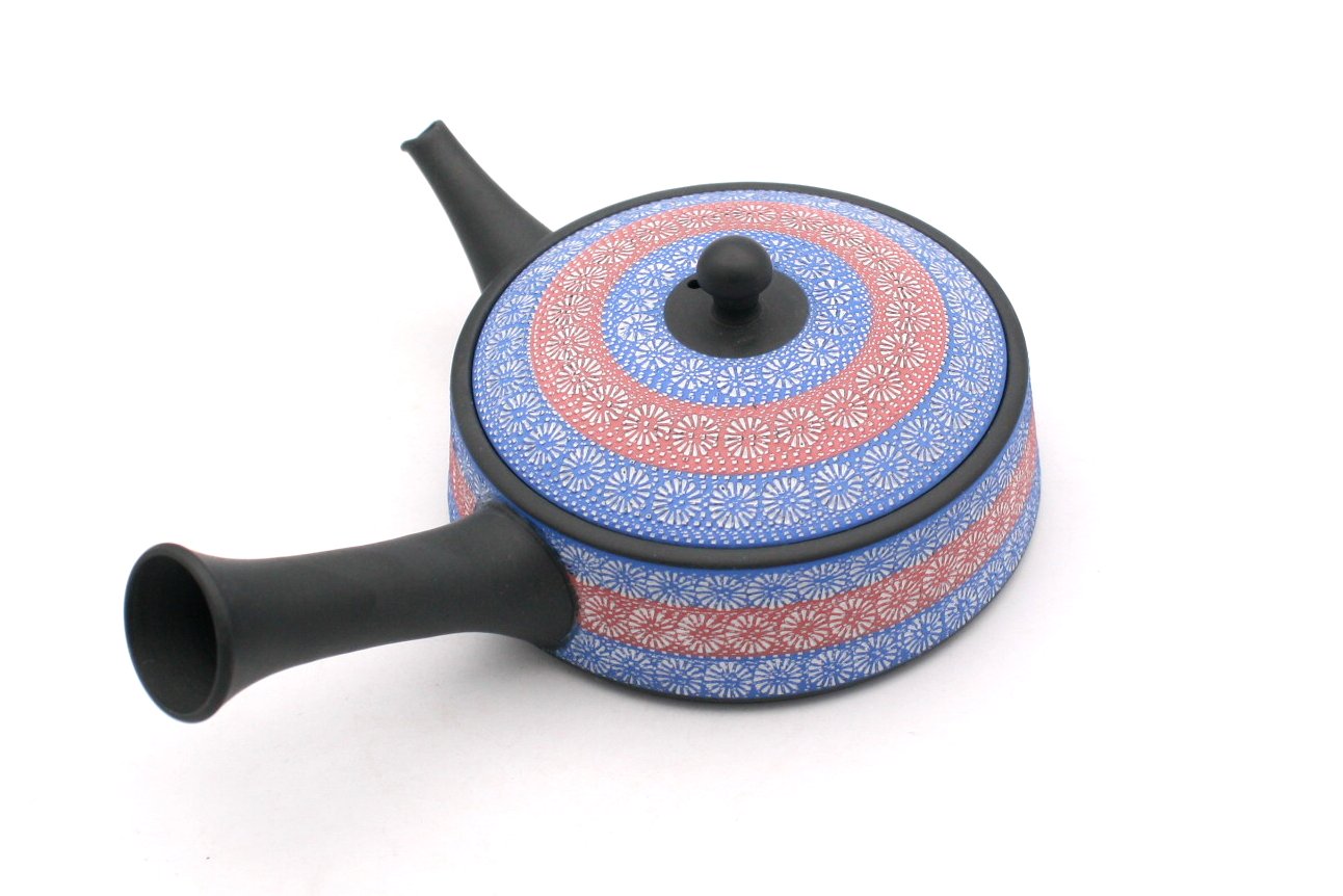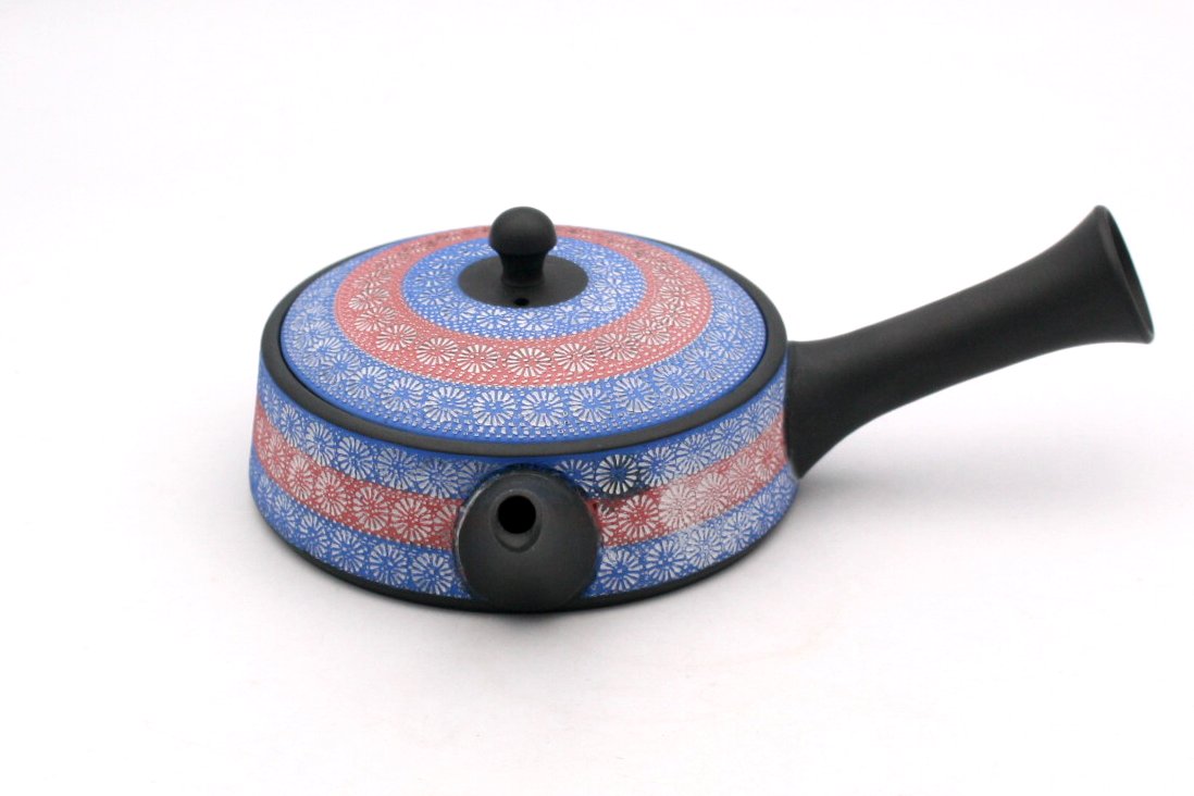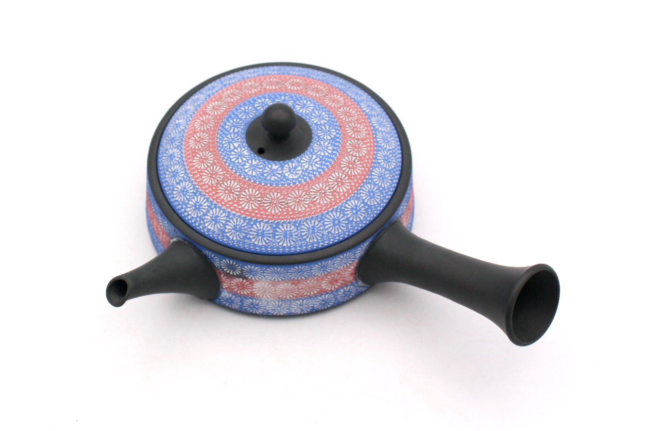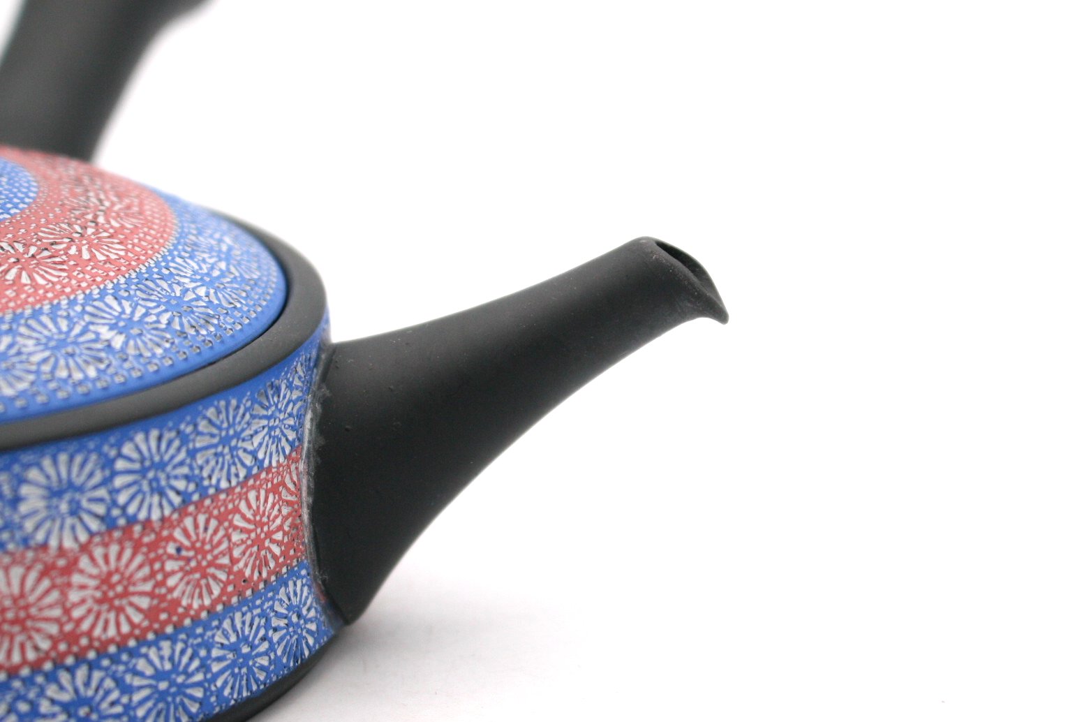 商品名 磯部輝之 黒泥ピンクと青ライン印花急須 ささめ茶こし teruyuki02