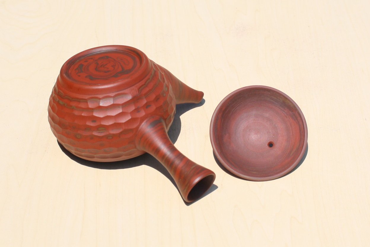 小西友仙 赤練込カット急須 1合 ささめ茶こし yusen004