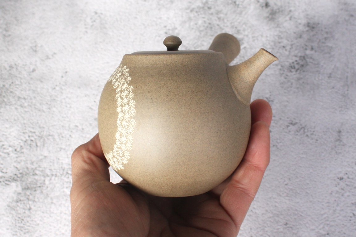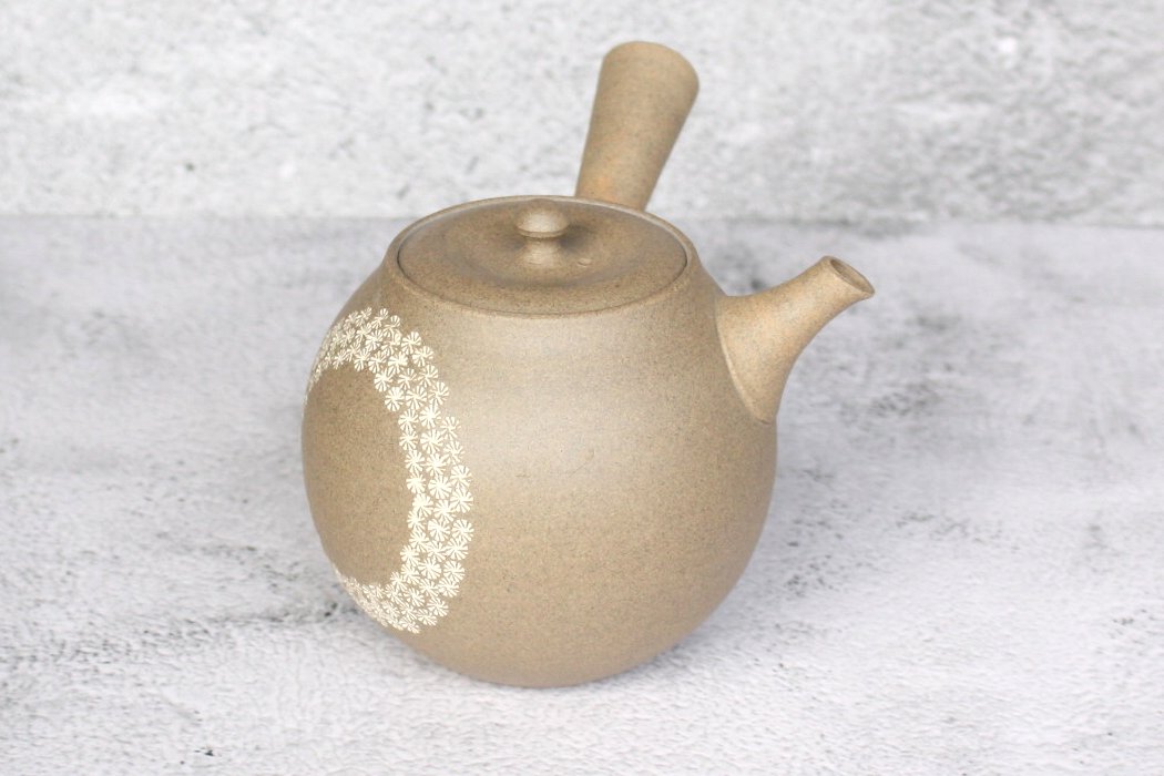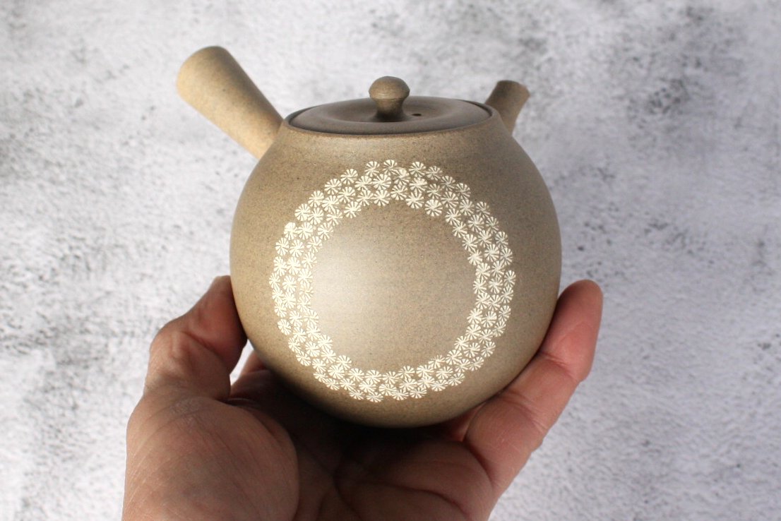 商品説明 伝統工芸士の都築豊さんの急須。伝統的な常滑焼の技術と独自の感性で作品を作り上げています。本体に手描きの花の模様施されています。ささめ茶こしはお茶の味を損なわず、焼締陶土は土を固め焼いたような肌触りで、お茶の渋みを吸着し旨みを引き出す役割があります。注ぎ口の中まで洗える、かんたん茶しぶとりを1つプレゼント。